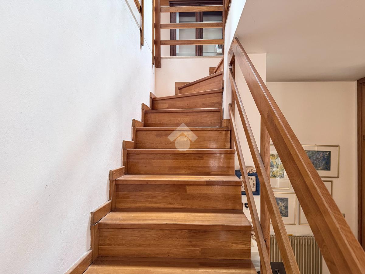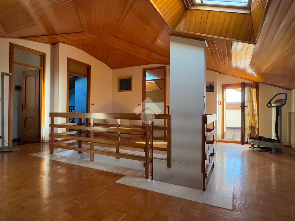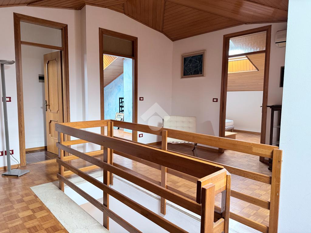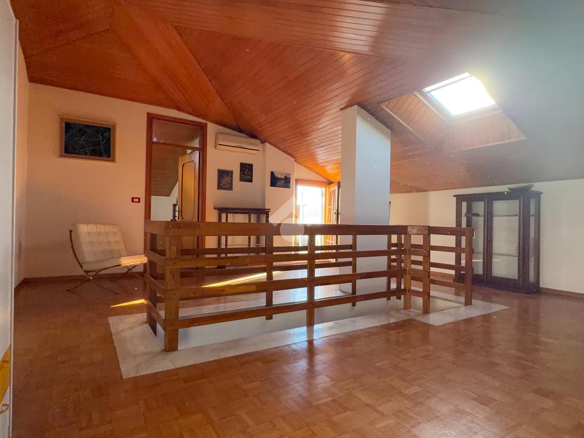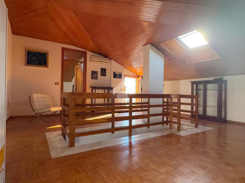 Una scala in legno interna conduce al piano superiore (mansardato con spazi abitabili), dove è presente uno spazio che consente la realizzazione di un secondo soggiorno con accesso alla terrazza abitabile, oltre a due camere da letto e secondo bagno. Circonda tutto il piano superiore uno sottotetto morto sfruttabile come spazio di deposito.